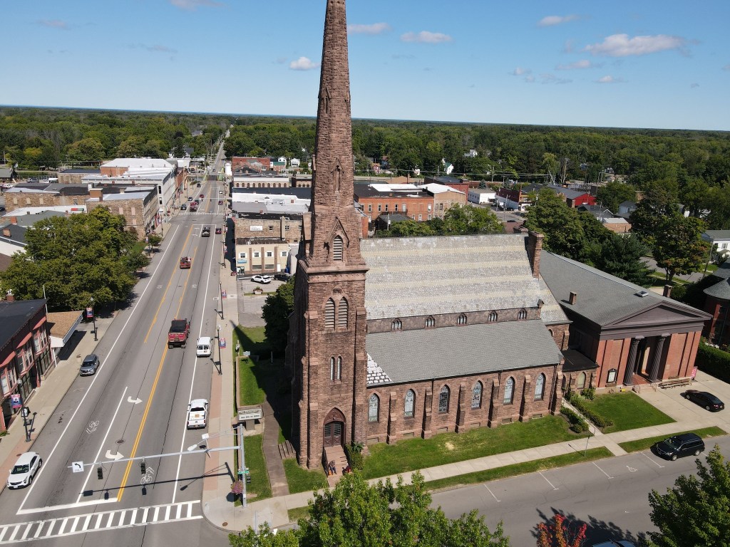 To find us in Albion, just look up. Find the tallest structure in the village and you will have located our Church Spire/Steeple. It’s as easy at that!