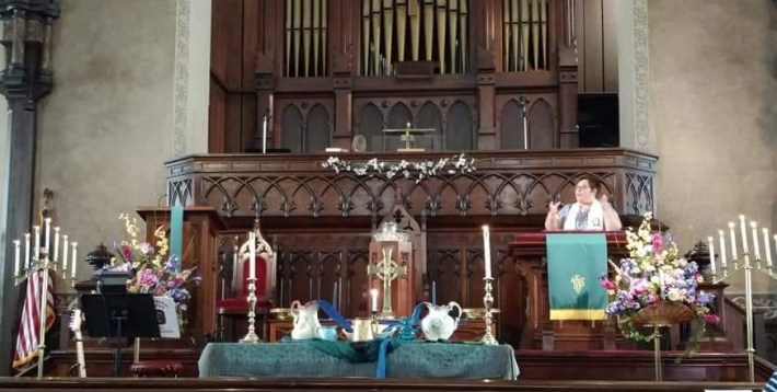 *An All -Accessibility Entrance for the sanctuary and dining room is located up the cement ramp on State Street. A lift is available at this entrance to make getting from the sanctuary to the dining room level as easy as pie. 🙂